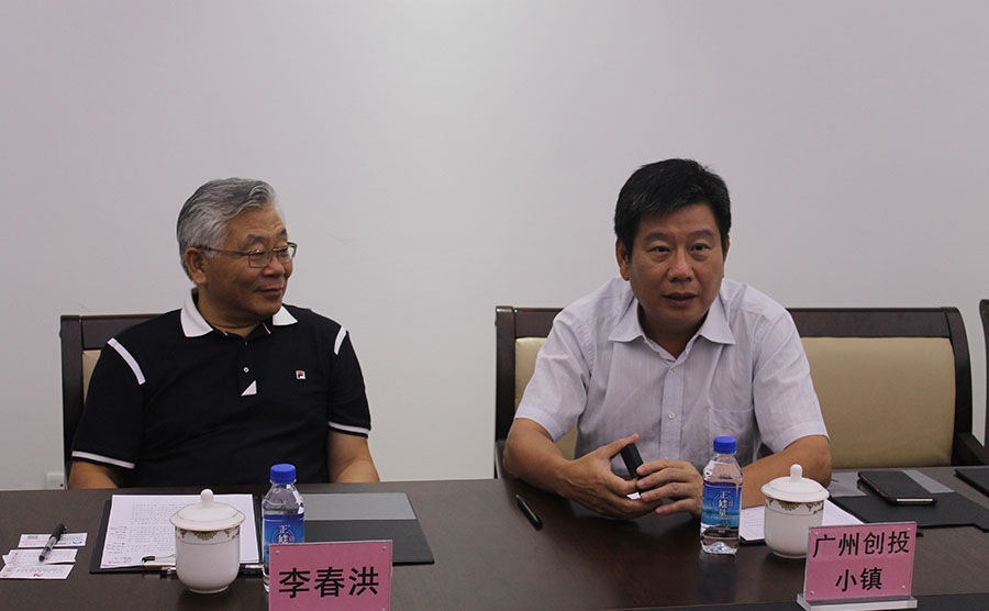 广州创投小镇董事长 黎名准,总经理 梁光杰等领导陪同参观并参与座谈会。