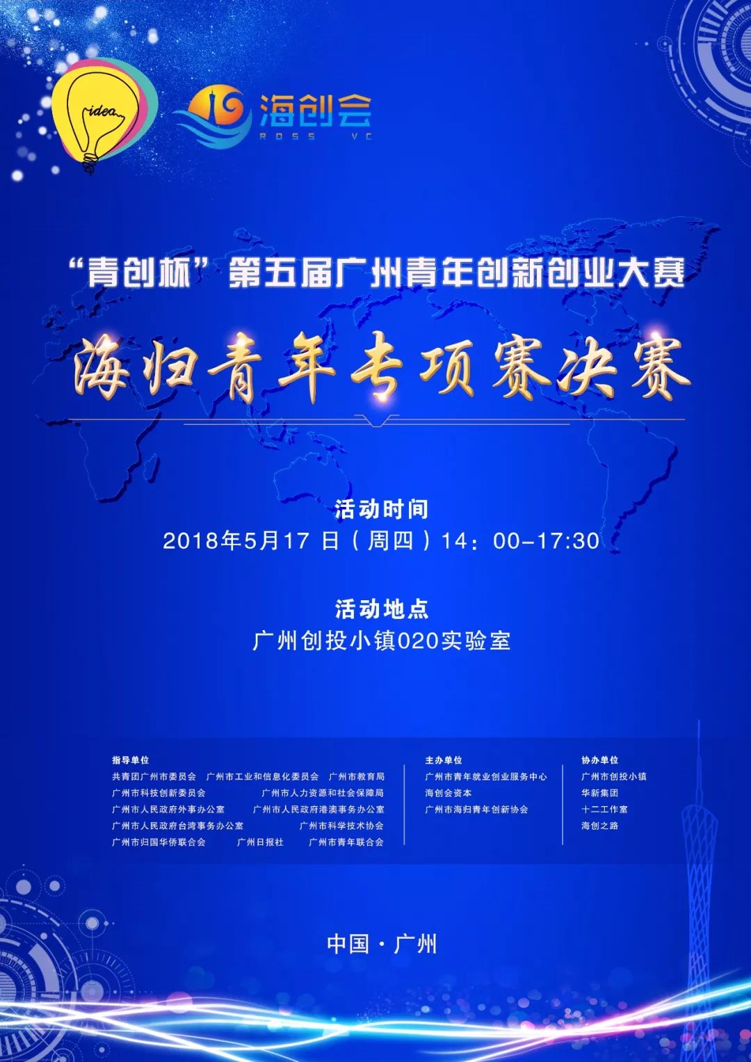 5月17日,由共青团广州市委员会、广州市工业和信息化委员会、广州市教育局、广州市科技创新委员会、广州市人力资源和社会保障局、广州市人民政府外事办公室、广州市人民政府港澳事务办公室、广州市人民政府台湾事务办公室、广州市科学技术协会、广州市归国华侨联合会、广州日报社、广州市青年联合会等单位指导,广州市青年就业创业服务中心、海创会资本等单位主办的“青创杯”第五届广州青年创新创业大赛海归青年专项赛决赛暨颁奖仪式活动在广州创投小镇隆重举行,市青创中心书记、主任李荣新,市侨联经济科技部部长张国民、副部长朱韧,海珠区团委书记付会婷等领导、嘉宾及主承办单位相关负责人出席活动。