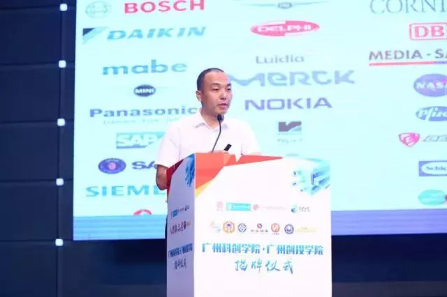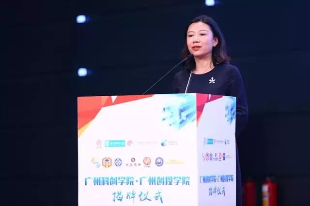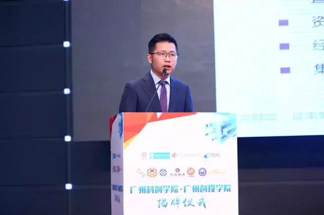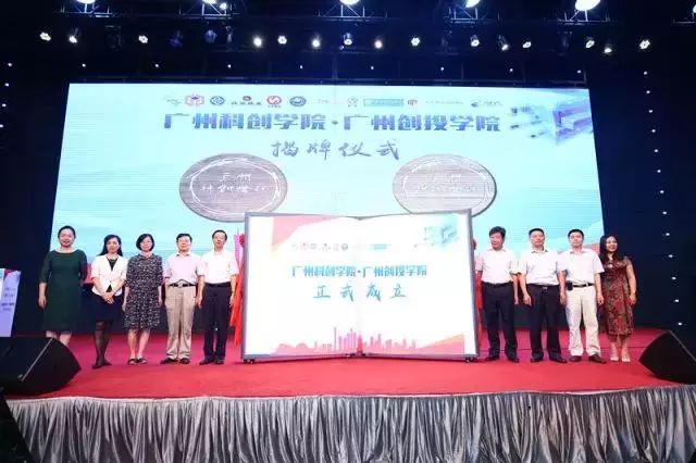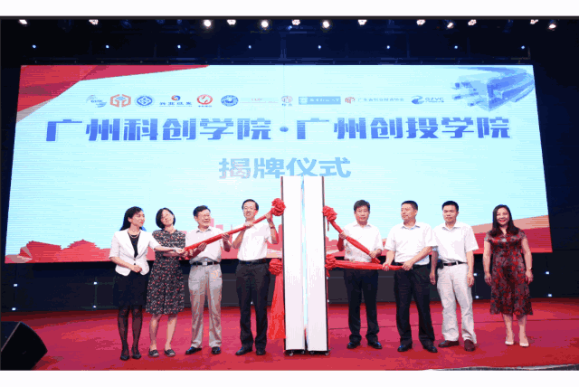 随后,广州市科技创新委员会主任王桂林,副巡视员石鹏飞,广东省创投协会会长徐勇,广州创投学院院长李玮,广州创投小镇有限公司董事长黎名准、广州科技开发总公司总经理李运南,海珠区科工商信局陈谊总工程师,广州科创学院副院长王晓宏,通过简单而创新的仪式,共同为广州科创学院、创投学院揭牌。