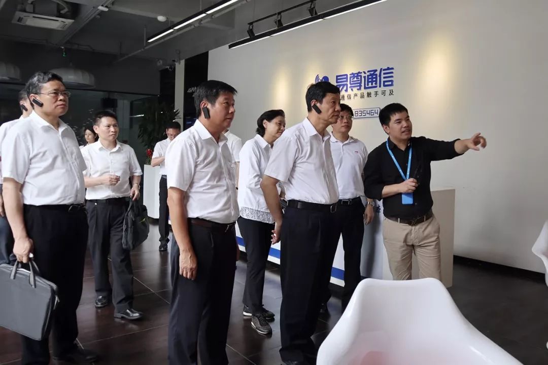 广州创投小镇董事长黎名准陪同陈建华主任一行参观了解创投小镇各个区域板块的建设和运营情况,并参观了易尊通信和钱大妈两家园区企业。