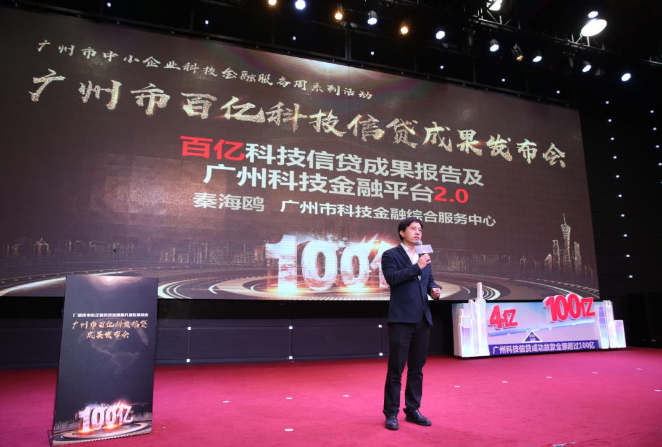 2018年12月25日,“广州市百亿科技信贷成果发布会”在广州创投小镇隆重举行。此次活动是“广州中小企业科技金融服务周”的2个系列活动。活动由广州市科技创新委员会、中国人民银行广州分行、国家税务总局广州市税务局联合指导,广州市科技金融综合服务中心承办,粤港澳大湾区科技金融联盟,大湾区科技金融服务中心、粤港澳大湾区科技金融与数字经济协同创新研究院、广东省创投协会、广州科创学院、广州创投学院、广州创投小镇投资管理有限公司、广州市科技金融综合服务中心各分中心协办。广州地区银行、证券、保险业金融机构负责人,科技企业新三板发展促进会,广州地区创业投资引导基金等创投机构负责人,广州地区创业投资引导基金等创投机构负责人和广州地区科技创新型企业代表等400多人以及20多家媒体参加。