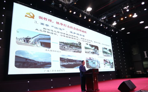 会上,谢晓丹书记充分肯定广州创投小镇的产业转型和改造升级成果,他指出,这个“城中村”治理项目,改善了人居环境和投资环境,稳控了治安风险和消防风险,提升了资产效益,从治安洼地蝶变为营造共建共治共享社会治理格局的高地,形成了可复制可推广的样本和范本。