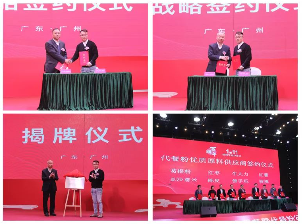 此外,会上还进行了谷物营养鉴定实验室的揭牌仪式及百颐年和广东省农业科学院蚕业与农产品加工研究所、优质农产品原材料供应商的合作签约仪式。