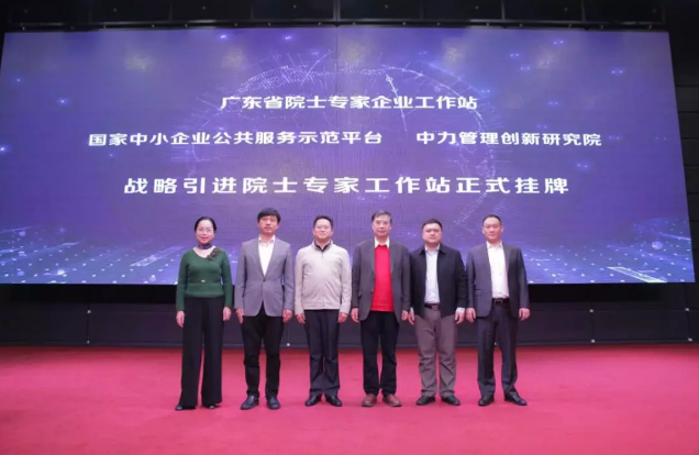 接下来是广东省院士专家工作站挂牌仪式。广东省院士专家工作站是由广东省科协设立,基于技术创新需求,依托高等院校、科研院所和专业学会,组织院士和学科带头人在我省产业密集区、高新技术开发区、大中型企业、科技型中小企业及其他企事业单位或学会建立的技术创新工作平台。李江副巡视员,刘人怀院士,孙戎副院长,秦海鸥董事总经理,刘建刚董事长共同为院士专家工作站揭牌。