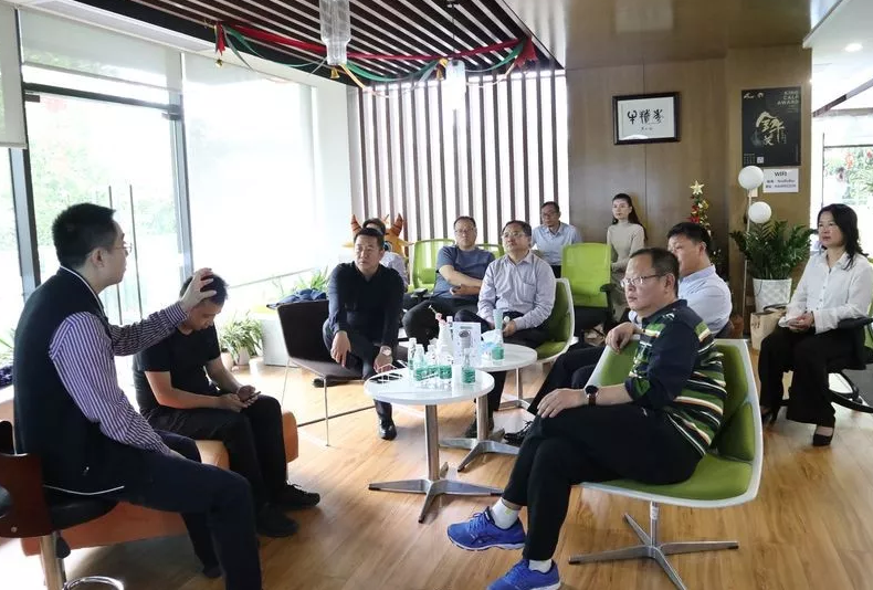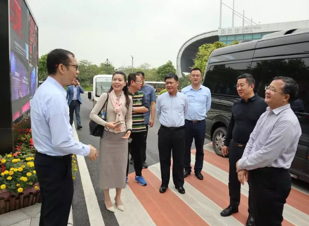 随后郑承杰局长一行在梁总的陪同下游览了园区,并实地考察了广州市科技金融综合服务中心和园区企业牛犊秀,听取相关负责人对项目发展和运营情况的介绍。