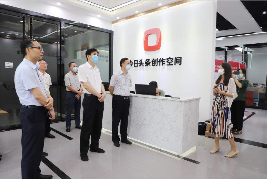 洪副主席一行先游览园区,参观园区企业今日头条创作空间和广州市科技金融综合服务中心;在020创新实验室发布厅观看园区宣传视频。随后,双方在020创新实验室会议室进行座谈交流,洪副主席听取了黎董对园区发展历程、运营情况等方面的介绍,双方就产业布局、产业提升等方面进行讨论和交流。